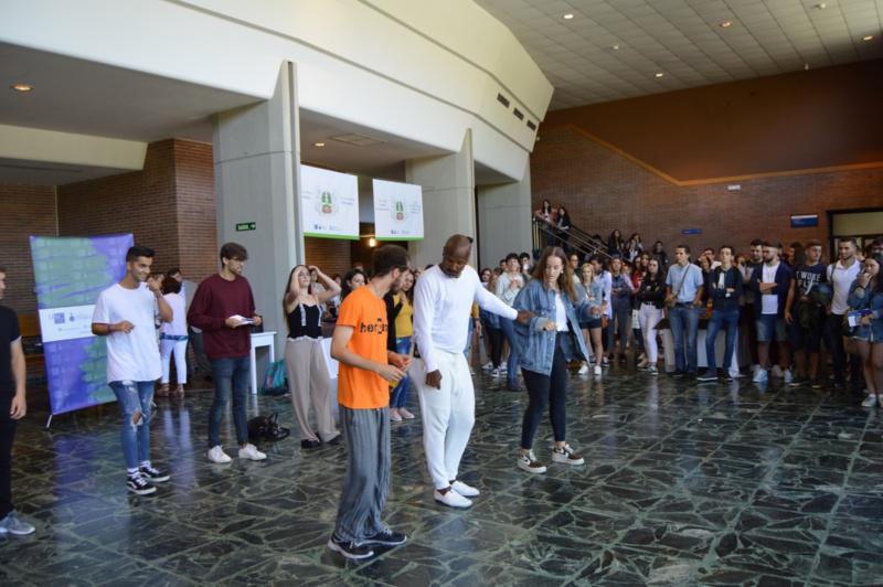 Alumnado de primeiro curso matriculado no campus lugués Xornada de benvida celebrada no auditorio de Veterinaria Exhibición de bailes latinos