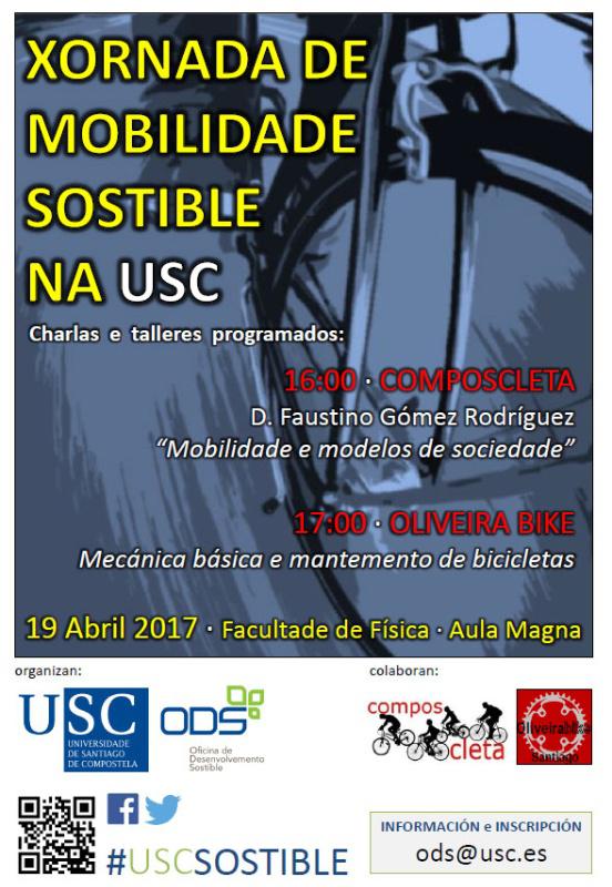 A USC leva traballando moito tempo polo fomento dunha mobilidade sostible en favor da comunidade universitaria e da nosa contorna. Entre outras actividades, promove o préstamo de bicicletas nos Campus de Lugo e Santiago, a ferramenta "comparte coche" e os mapas peonís.