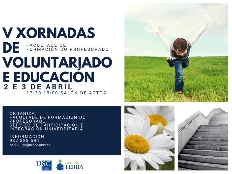 As xornadas sobre voluntariado e educación, unha iniciativa que chega este ano á súa quinta edición, desenvolveranse en quenda de tarde, de 17.30 a 19.00 horas, e contarán como relatores convidados con representantes de sete entidades e asociacións (Fundación Juan Soñador, Asociación Down Lugo, Servizo de Participación e Integración Universitaria do Campus de Lugo, Ceip Paradai, Asociación Capaces e Fundación Dignidade) que veñen cumprindo un relevante cometido social na capital luguesa desde hai anos exporán o traballo desenvolvido neste tempo. Os relatores convidados farán especial fincapé naquelas actuacións que, polas súas características e os seus ámbitos de acción, ligan mellor cos intereses e capacidades de colaboración co alumnado da Facultade de Formación do Profesorado.