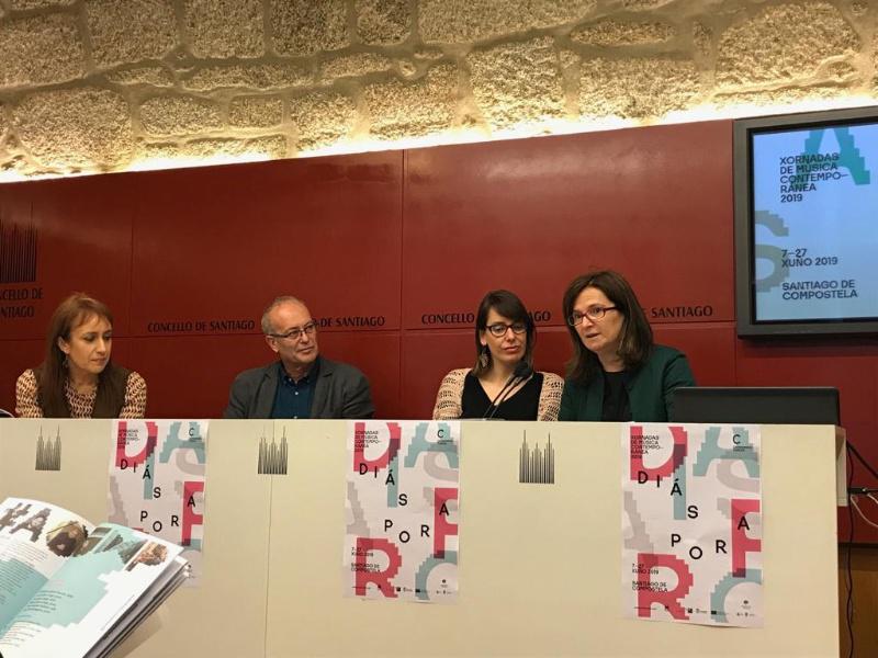 Do 7 ao 27 de xuño en distintos espazos de Compostela terá lugar as Xornadas de Música Contemporánea 2019, que nesta ocasión xirarán en torno á Diáspora. O programa presentárono esta mañá a concelleira de Acción Cultural, Branca Novoneyra; a xerente do Consorcio de Santiago, Belén Hernández; a vicerreitora de Comunicación, Cultura e Servizos, María do Mar Lorenzo; e o director do CGAC, Santiago Olmo, todas institucións organizadoras do ciclo xunto á Deputación da Coruña.