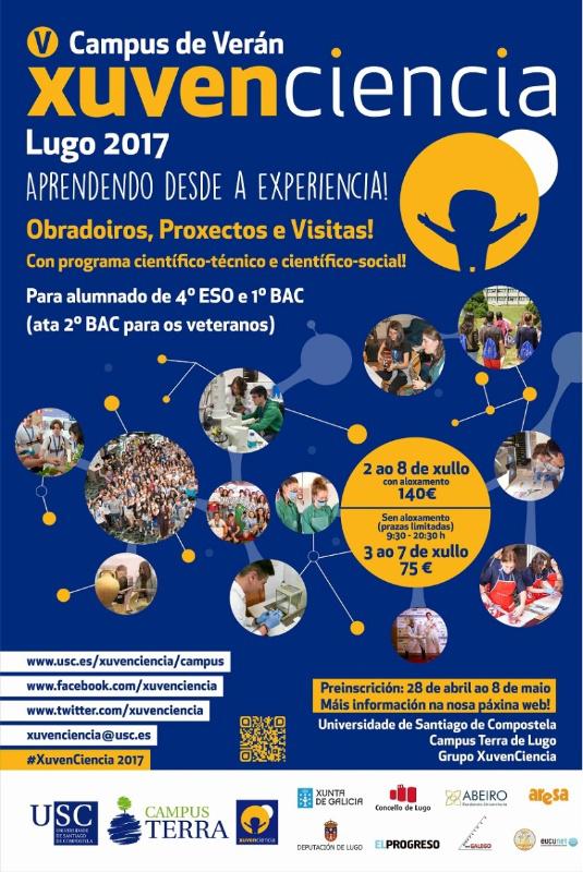 Do mesmo xeito que en edicións anteriores, o campus de verán Xuvenciencia Lugo 2017 presenta un módulo para veteranos, ao tempo que brinda servizo de aloxamento desde a noite do 2 de xullo ata o 8 de xullo, para poder gozar das actividades programadas polos monitores da A.D.C. Lumieira Lugo. A presente edición aspira, como primordial obxectivo, a impulsar a convivencia. Por este motivo, ofertáronse prazas con aloxamento para que todo o alumnado interesado poda aprender a convivir cos seus futuros/as compañeiros/as de carreira. Ademais, este proxecto de divulgación científica conta con máis de 104 eventos programados e está avalado pola participación duns 146 docentes da USC e outro persoal de apoio.